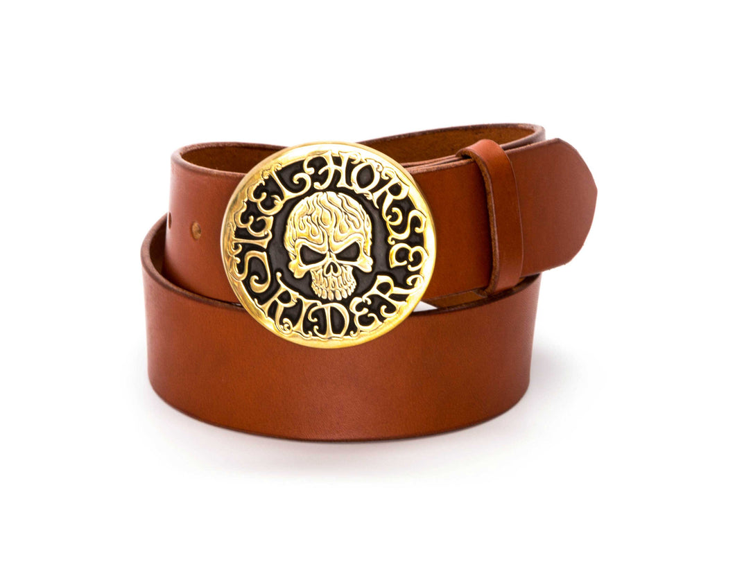 Leather Belt with Steel Horse Rider Skull Buckle