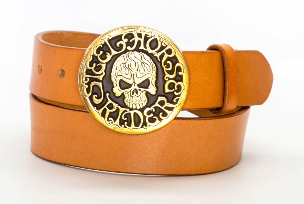 - Bridle leather belt with sand-cast solid bronze Steel Horse Rider Skull buckle